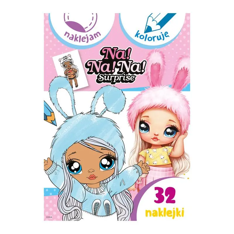 "Naklejam i Koloruję" to książka z fantastycznymi naklejkami i dużymi, prostymi ilustracjami. Wklejając na stronach naklejki z odpowiednimi obrazkami, a potem kolorując rysunki według wzoru, dziecko ćwiczy spostrzegawczość oraz kształci zdolności manualne — kluczowe umiejętności dla wieku przedszkolnego. Dodatkowym atutem są obrazki popularnych laleczek z serii Na! Na! Na! Surprise. W książce znajdują się 32 ilustracje do pokolorowania i 2 strony naklejek.