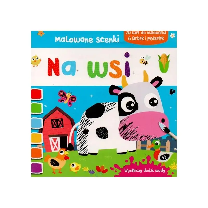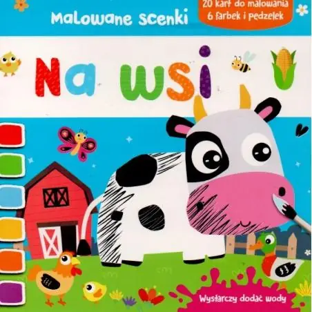 Czeka na Ciebie 20 czarno-białych ilustracji z wiejskimi zwierzakami. Użyj farb z dołączonej palety i wyczaruj wspaniałe obrazki.