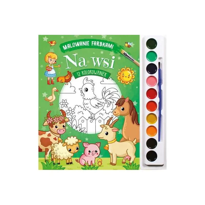 Kolorowanka z zestawem farb i pędzelkiem do malowania! Puść wodze fantazji, chwyć pędzelek do ręki i nadaj czarno-białym obrazkom niesamowite barwy. Kartki możesz wyrwać i ozdobić nimi pokój — Twoje dzieła pozostaną z Tobą na długo!