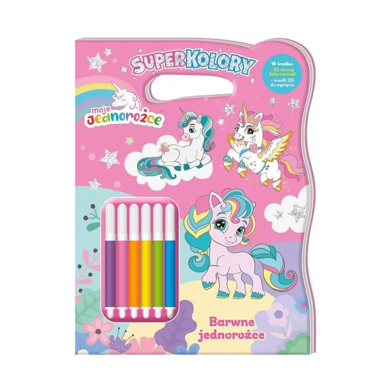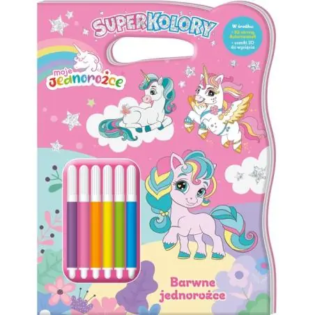 Książka SUPERKOLORY to atrakcyjne kolorowanki z rysunkami ulubionych bohaterów. Do każdej z publikacji dołączone są piękne flamastry. Wystarczy, że dziecko pomaluje obrazek, a rysunki z postaciami ulubieńców nabiorą kolorów. Świetna zabawa gwarantowana!