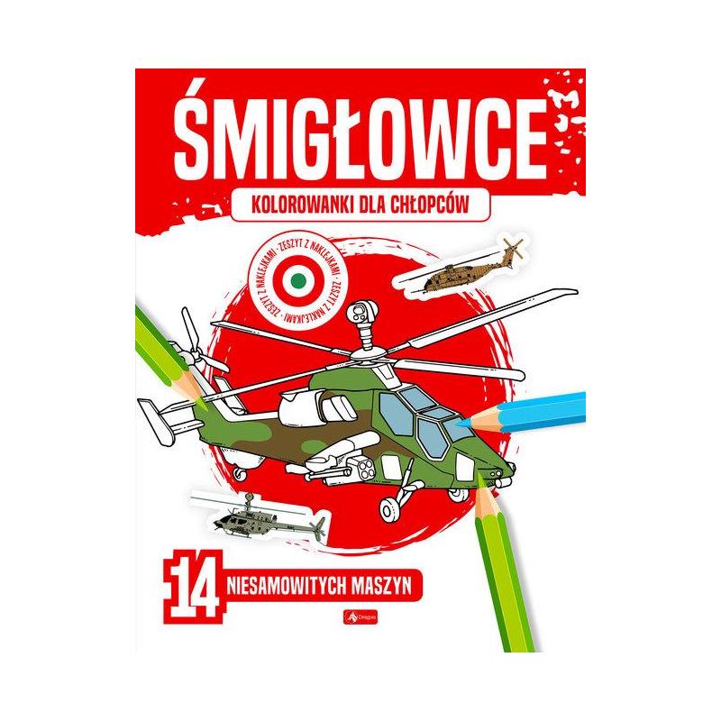 KOLOROWY LOT WOJSKOWYMI ŚMIGŁOWCAMI Oto nie lada gratka dla chłopców – czternaście kolorowanek z wojskowymi śmigłowcami. Black Hawk i Kiowa, Boeing Chinook i Little Bird, Bell Griffon – to tylko niektóre z wiernie odtworzonych modeli do pokolorowania. Sik