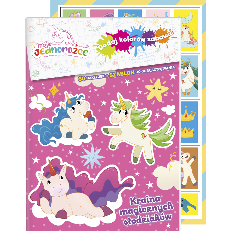 Dodaj kolorów – seria kolorowanek – w środku aż 48 stron ze zróżnicowanymi obrazkami do pomalowania. Publikacje wspierają rozwój motoryczny dziecka. Wystarczą kredki, by wypełnić strony radosnymi kolorami! Atrakcyjne zadania zaproponowane w formie zabawy z ulubionymi bohaterami sprawiają, że zdobywanie nowych umiejętności staje się dla dziecka nie lada gratką! W środku szablon, który pozwoli odwzorować różnorodne kształty i postaci ulubionych bohaterów!