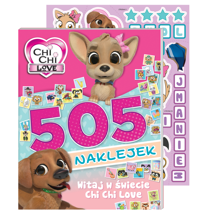 Chi Chi Love. 505 Naklejek to kolorowa książka z ulubionymi bohaterami. W środku maluch znajdzie aż 505 naklejek, a także dużą porcję zagadek, łamigłówek, labiryntów i kolorowanek. Każde dziecko może uczestniczyć przygodach uroczej Chi Chi i jej przyjaciół! Świetna zabawa gwarantowana!