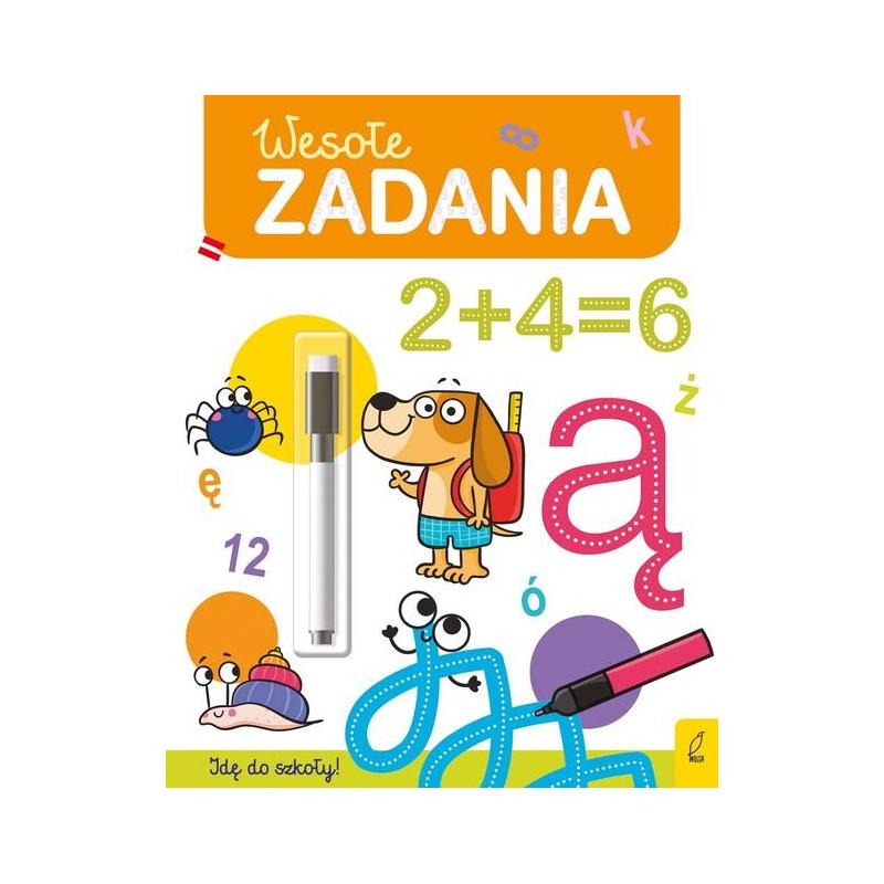 Pisz i poprawiaj – i to wielokrotnie! To przydatne narzędzie w bezstresowej nauce pisania. Kierunek zapisu wskażą strzałki zamieszczone na dużych cyfrach i literach, aby potem łatwiej było ćwiczyć rękę w pisaniu po śladzie w liniach, a specjalny flamaster z gumką i odpowiednio przygotowane strony umożliwią wielokrotne poprawianie, dzięki czemu zadania można wykonywać wiele razy. Dodatkowo maluch może ćwiczyć rysowanie w różnych zygzakach, pętelkach, kołach i innych ciekawych szlaczkach. W środku czekają na ciebie różnorodne zadania – ćwicz pisanie, rysowanie i rozwiązuj zagadki, które sprawią, że pierwszy dzień w szkole niczym cię nie zaskoczy. Tu nie ma miejsca na nudę, a dzięki ścieralnemu flamastrowi zadania możesz wykonywać tyle razy, ile chcesz. Baw się dobrze!