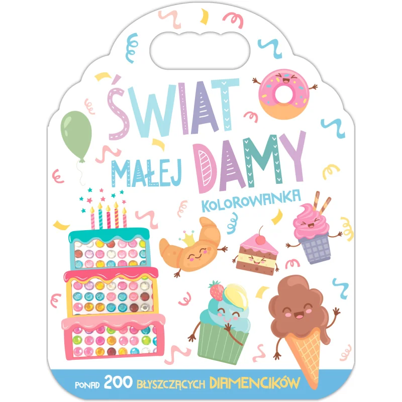 Z serią książeczek z rączką – Świat małej damy, Świat uroczych zwierzątek, W świecie bajek, W świecie jednorożców – dzieci przenoszą się do bajkowego świata i mogą dać wyraz swojej kreatywności, kolorując obrazki. W środku mali artyści znajdą też ponad 200 błyszczących diamencików do ozdobienia swoich wyjątkowych prac. To gwarancja wspaniałej zabawy!