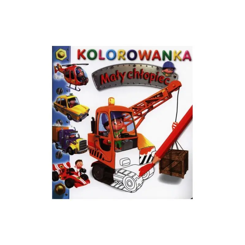 Taksówka Romka, ciężarówka Czarka, helikopter Piotra, dźwig Darka i bolid Bartka czekają na pokolorowanie! W serii kolorowanki: "Mały chłopiec.Traktor", "Mały chłopiec. Wóz strażacki", "Mały chłopiec.Dźwig"
