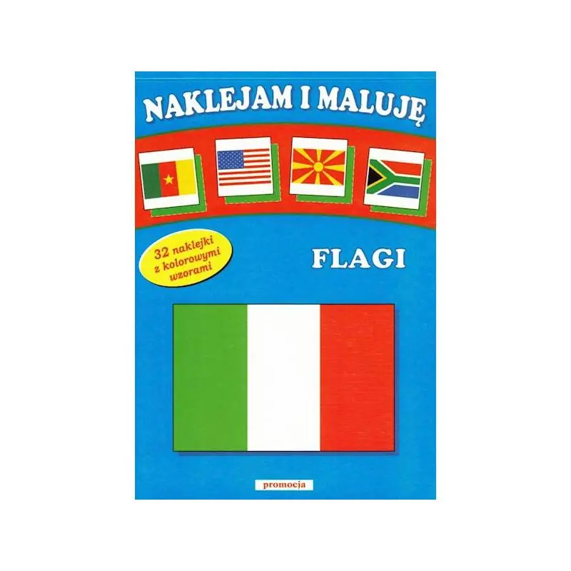 Flagi to malowanka, dzięki której dziecko rozwinie zdolność obserwacji i umiejętności manualne oraz pozna kolory. Podpisy pod ilustracjami ułatwiają kojarzenie nazwy z obiektem, co pomaga w nauce czytania. Dobierając i przyklejając nalepki przedstawiające 32 pokolorowane ilustracje, dziecko ćwiczy umiejętność logicznego myślenia i