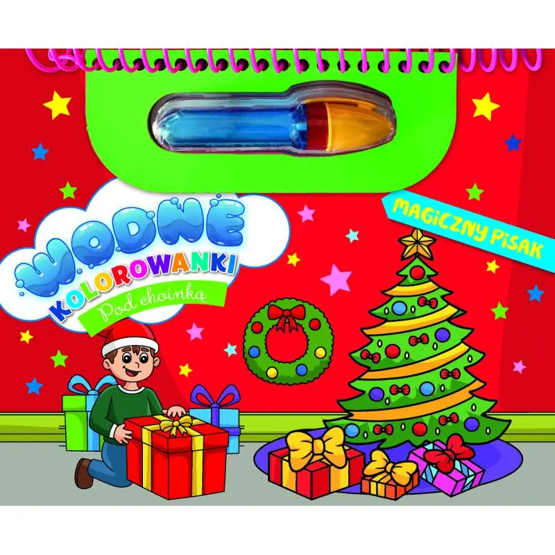 Śliczna książka z magicznym pisakiem wodnym, dzięki któremu można wyczarować kolory na czarno-białych obrazkach. Książka umili czas oczekiwania na Święta i zainspiruje dziecko do aktywności.