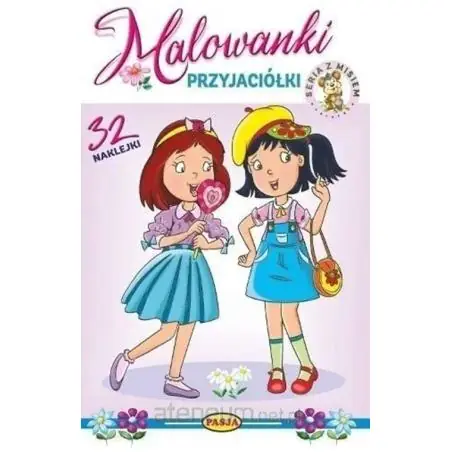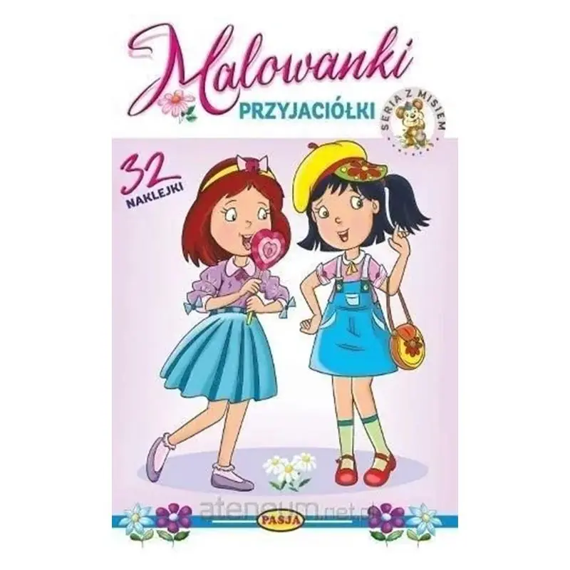 Kolorowanka z elementami edukacyjnymi (liniatura do pisania) oraz naklejkami samoprzylepnymi.