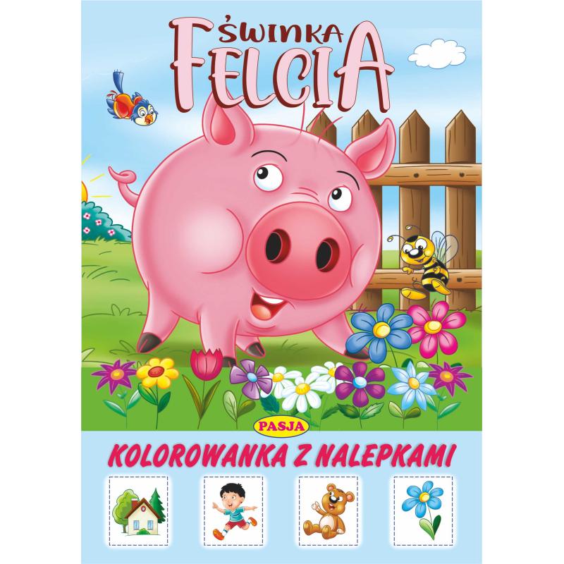 Kolorowanka z tekstem do czytania oraz naklejkami samoprzylepnymi.