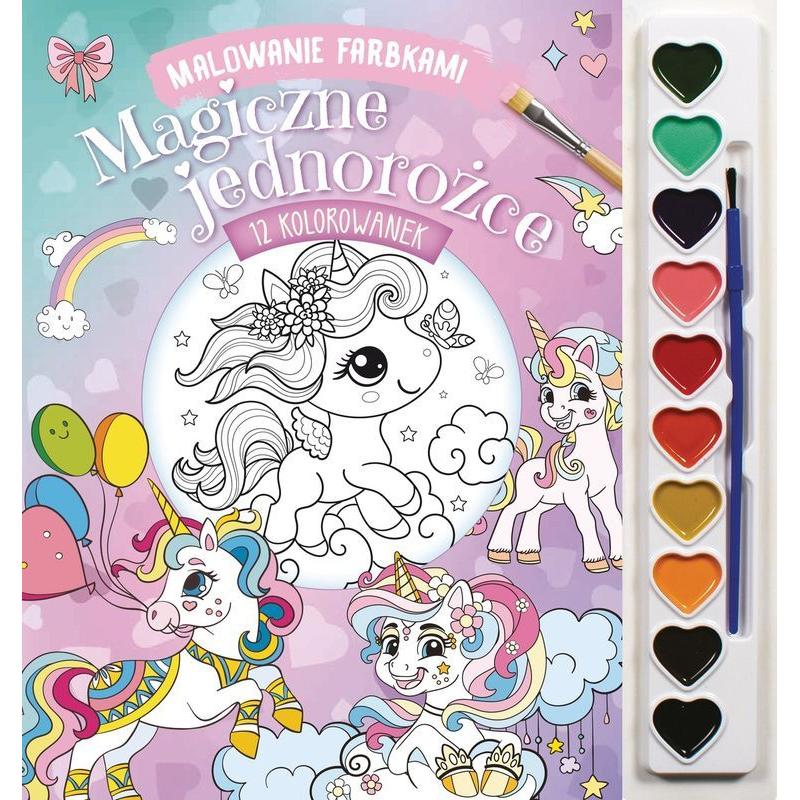 „Jednorożce“ to czarująca książeczka do malowania farbkami, która przenosi dzieci w świat pełen blasku, tęczy i fantazji. W środku czekają urocze jednorożce gotowe, by nadać im kolorowe grzywy i magiczny blask. To nie tylko wspaniała zabawa, ale także doskonałe ćwiczenie kreatywności i zdolności manualnych. Idealna propozycja dla małych artystów marzących o bajkowej krainie!