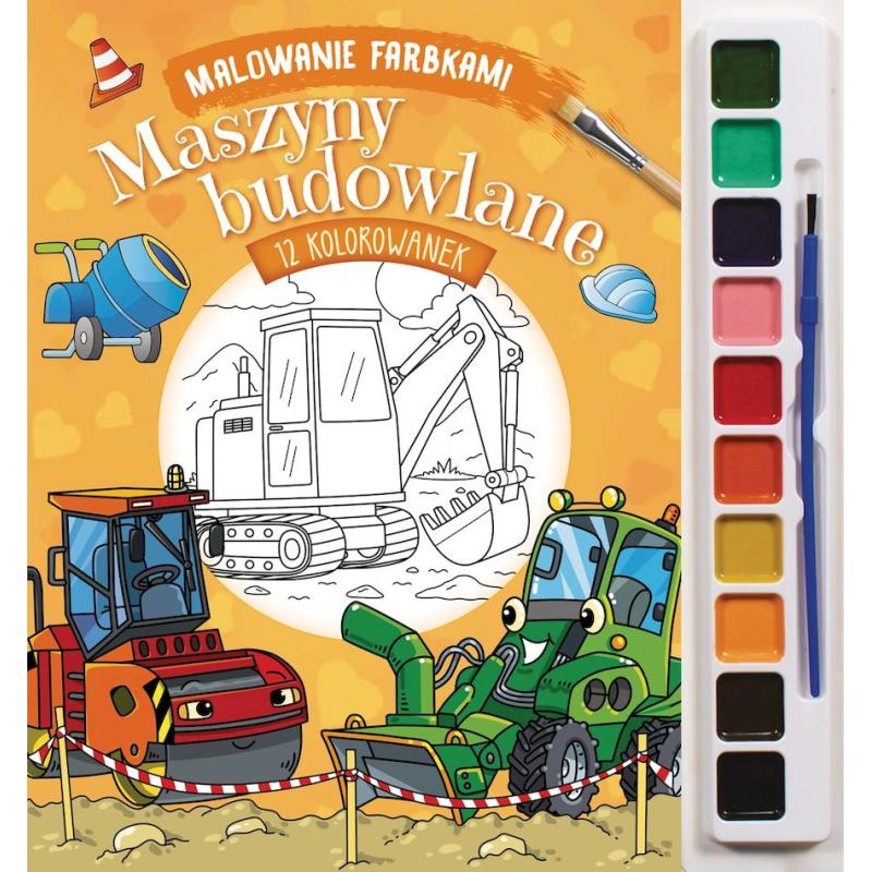 „Maszyny budowlane“ to książeczka do malowania farbkami stworzona z myślą o dzieciach, które kochają koparki, dźwigi, betoniarki i ciężarówki. W środku znajdziesz dynamiczne sceny z placu budowy, gotowe do pokolorowania według własnego pomysłu.