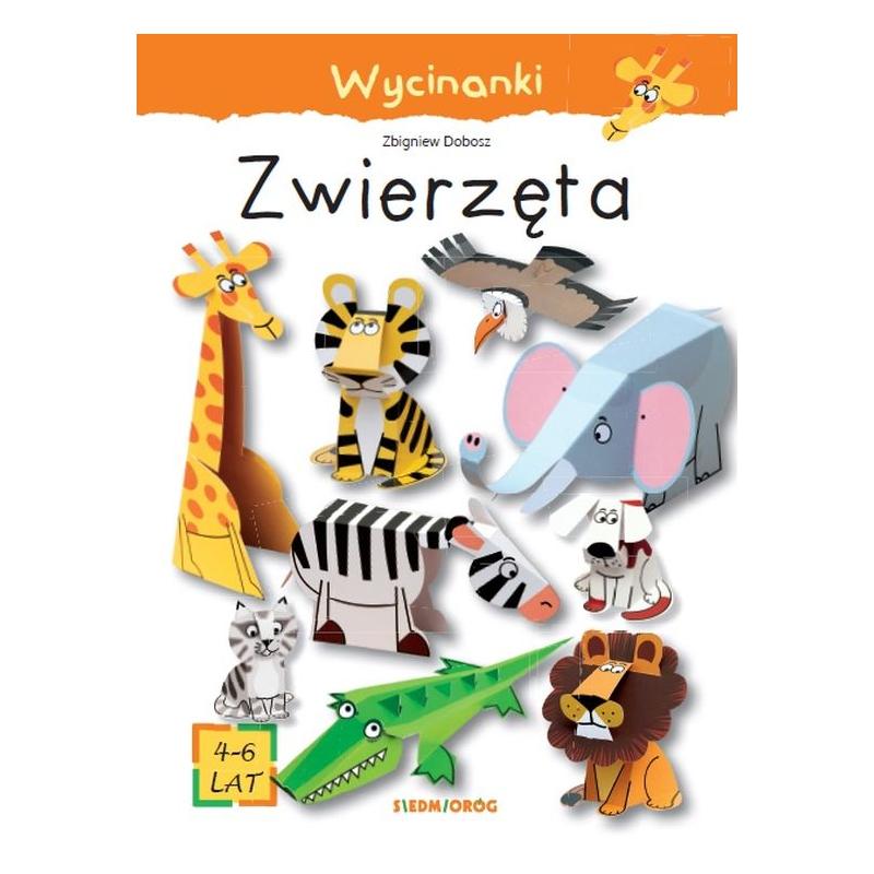 Ta piękna książeczka aktywizująca dedykowana jest najmłodszym wielbicielom zwierząt. Przyszli zoolodzy mogą całkowicie samodzielnie i w pełni bezpiecznie – bez używania kleju i nożyczek – odtworzyć modle niebezpiecznych drapieżników, jak lew, tygrys czy krokodyl, nie mówiąc o skrzydlatym sępie. Będą także mogli wskrzesić do życia kilka łagodnych czworonogów: żyrafę, słonia, kota i uroczego psa Burka. W tej twórczej i pasjonującej pracy małym miłośnikom fauny pomogą wzory, jasne instrukcje oraz nacięcia. Już 4-letni przyjaciele zwierząt bez trudu poradzą sobie ze skonstruowaniem kartonowych pupilków. Dodatkową atrakcją wycinanek są proste teksty, które podpowiedzą, jak ożywić papierowe modele.
