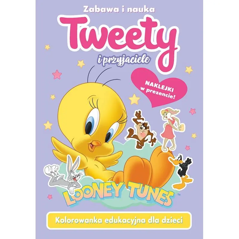 Kolorowanka edukacyjna z serii Tweety i przyjaciele to zbiór łamigłówek dla dzieci. Tweety wprowadza dziecko w kolorowy, bajkowy świat i zapoznaje ze swoimi przyjaciółmi. Za pomocą ciekawych i kolorowych zadań publikacja rozwija u dziecka kreatywność, umiejętność logicznego myślenia oraz zdolności plastyczne. Dodatkową atrakcję dla dziecka