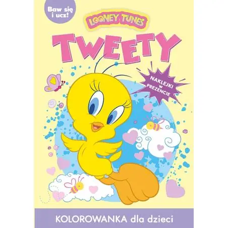Kolorowanka Tweety to zestaw rysunków do pokolorowania dla fanów kaczuszki Tweety. Tweety zachęca do wspólnej i wesołej zabawy. Kolorowanka to idealny sposób na spędzenie długich wieczorów lub jako prezent dla malucha. Dziecko doskonali sprawność manualną oraz precyzję ruchów. Gotowe obrazki mogą być świetną dekoracją pokoju. Dodatkową atrakcję stanowią naklejki.