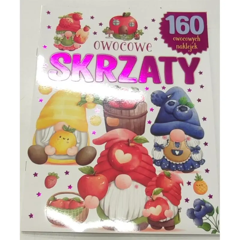 - 160 kolorowych naklejek z motywem owoców i skrzatów
