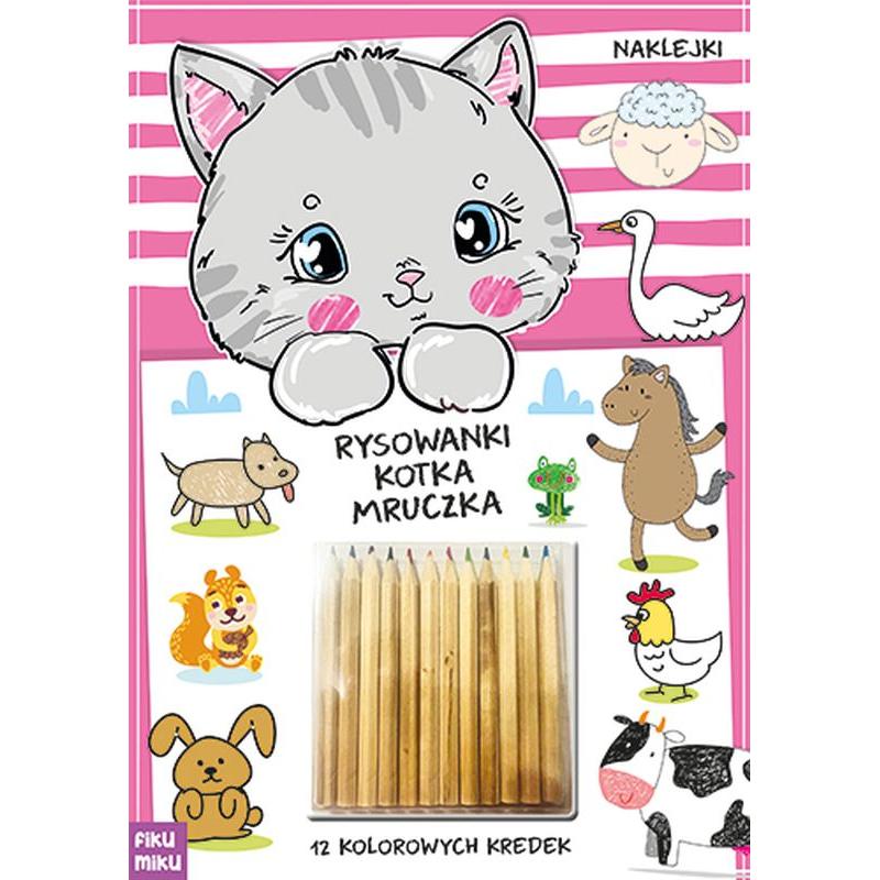 Słodziutka książeczka aktywizująca z naklejkami oraz kredkami ołówkowymi. Łączenie punktów, rysowanie po śladzie, szukanie podobieństw, łączenie w pary czy tworzenie własnych barwnych ilustracji, z wykorzystaniem aż 12 kolorów kredek, będzie dla dziecka olbrzymią frajdą.