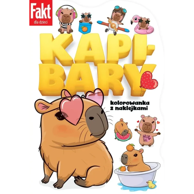 Kolorowanka kapibary to zbiór prostych kolorowanek dla najmłodszych dzieci. Maluchy mogą pokolorować obrazki według własnego pomysłu lub wzoru z dołączonej naklejki.