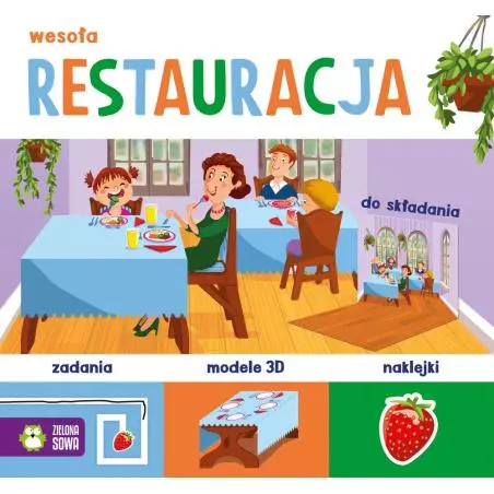 Zaproś dziecko do zabawy! Niech samodzielnie ozdobi wnętrze poczty, warsztatu, restauracji i sklepu. Niech dowie się, jak wygląda praca listonosza i mechanika, poda gościom obiad lub zrobi zakupy u pani Halinki! Seria wesołych książek z ćwiczeniami, naklejkami, wypychankami i modelami 3D, do złożenia przez dziecko bez użycia kleju i nożyczek. Dzięki temu Twój maluch w prosty sposób sam zbuduje scenografię, a następnie ozdobi ją naklejkami i ustawi w niej złożone elementy wnętrza (np. samochód, wózek sklepowy, stół z gośćmi i kelnerem, skrzynkę pocztową). W trakcie zabawy pozna nowe miejsca, rozwiąże ciekawe zadania związane z tematem danej książki oraz rozwinie sprawność manualną i kreatywność.