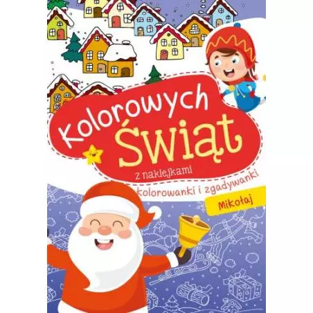 Książeczka do kolorowania, naklejania, zgadywania i odszukiwania, czyli prezent od Świętego Mikołaja! Urocze rysunki, roześmiani bohaterowie, zimowe przygody i zabawy stworzone z myślą o najmłodszych. Mikołaj życzy Kolorowych Świąt!