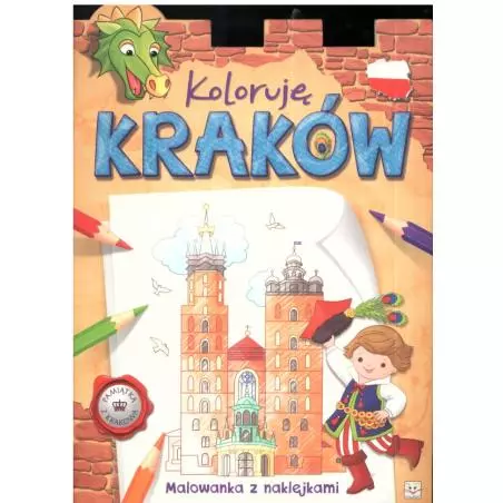 Koloruję Kraków. Malowanka z naklejkami Malowanka z naklejkami to doskonała pamiątka z Krakowa. Z tą książeczką dzieci: -poznają najważniejsze zabytki miasta, -spotykają bohaterów krakowskich legend, -kolorują i wspominają miejsca, które odwiedziły, -bawią się naklejkami. Poznawaj i koloruj Kraków!
