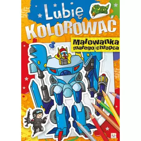 Lubię kolorować. Malowanka małego chłopca Waleczni wojownicy, dinozaury i kosmiczne roboty, czyli zbiór obrazków do kolorowania, które z pewnością spodobają się każdemu chłopcu. Dołączone naklejki uatrakcyjnią dziecku pracę z książką.