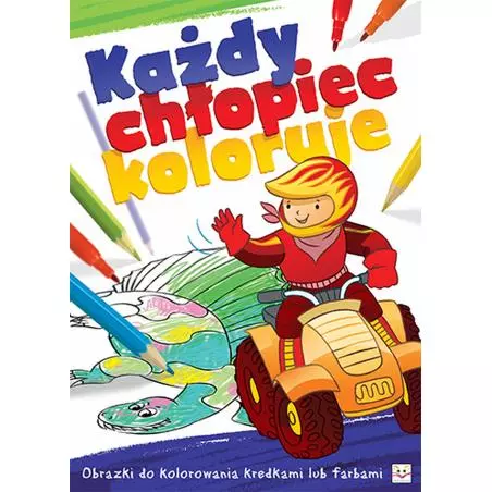 Zbiór obrazków do kolorowania, które z pewnością spodobają się każdemu chłopcu. Atuty tej książeczki: staranne ilustracje i duży format obrazków, perforacja, dzieki której łatwo można wyrywać karty, odporny na przeciekanie papier umożliwia malowanie farbami, ciekawa dla dziecka tematyka ilustracji. Baw się z nami kolorami!