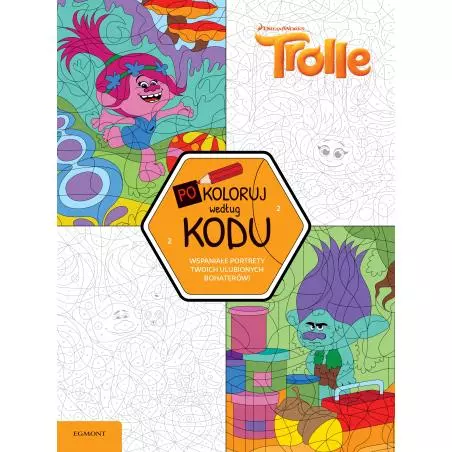 Odwiedź Trollowice, by je ubarwić! Znajdź cyferkę, a następnie z tyłu okładki – kolor, który jej odpowiada. W ten sposób pokolorujesz we właściwy sposób wszystkie portrety swoich ulubionych bohaterów, którzy tylko czekają na zabawę z tobą. Nie pozwól się długo namawiać, chwyć kredki, mazaki lub kolorowe długopisy i spędź miło