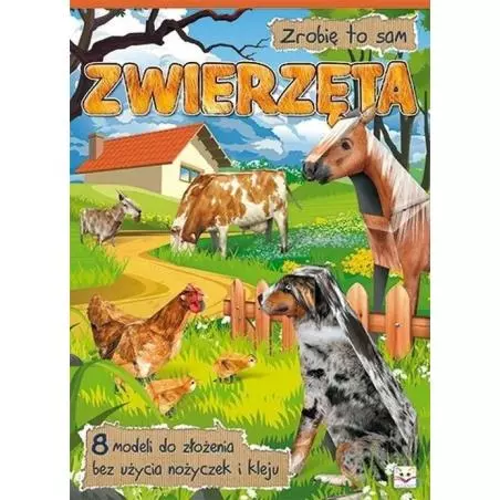 Książka z modelami do złożenia to doskonały prezent dla każdego dziecka. Bawi – wykonany własnoręcznie model jest źródłem radości i satysfakcji dziecka, a także rozwija – dziecko kształci swoją wyobraźnię i zdolności manualne. Wszystkie zamieszczone w książce modele wykonuje się bez użycia nożyczek i kleju – zabawa jest więc czysta i bezpieczna. Starsze dzieci złożą je samodzielnie, młodsze mogą potrzebować niewielkiej pomocy osoby dorosłej. W książce znajdują się modele: koń, kura i kurczęta, koza, krowa, świnia, pies, gęś.