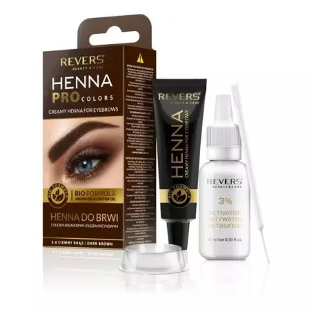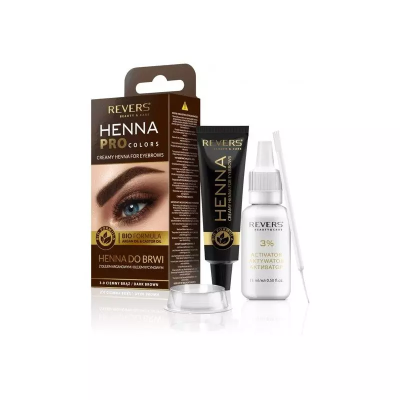 HENNA PRO COLORS jest niezwykle wydajna, wygodna i łatwa w użyciu, a efekty jednorazowego farbowania utrzymują się nawet do trzech tygodni. Henna skutecznie przyciemnia i przykrywa siwe włoski. Dzięki niej wszelkie ubytki stają się niewidoczne, a kolor brwi ujednolicony. Skład kosmetyku został wzbogacony o olej arganowy i olej rycynowy, które odżywiają, wzmacniają, a także zapobiegają wypadaniu włosków.