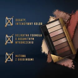 Max Factor Masterpiece Nude Palette jest wyjątkową, uniwersalną paletą cieni do powiek podkreślających oczy. Zawiera osiem idealnie dobranych cieni, niezbędnych do wykonania olśniewającego makijażu oczu w stylu nude. Idealnie dobrane cienie do powiek - od tonów jasnych po ciemne - pozwolą ci zarysować kontur oka w nieskończonej ilości kombinacji - od dziennego nude aż po subtelny smokey eye.