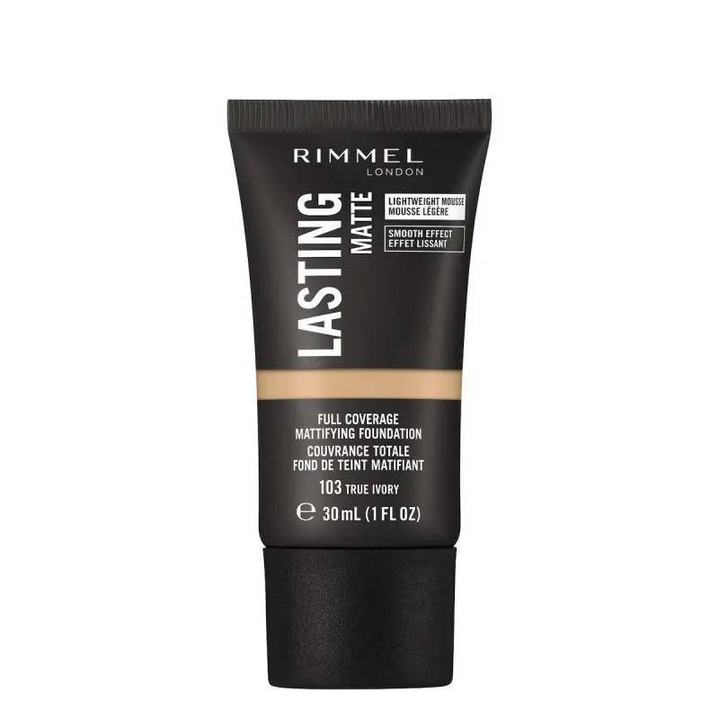 Podkład matujący Rimmel Lasting Matte w odcieniu 103 True Ivory to idealne połączenie lekkiej formuły, skutecznego krycia i długotrwałego efektu matowej skóry. Zapewnia świeży, naturalny wygląd bez efektu maski, przypominający perfekcyjne wygładzenie znane z filtrów