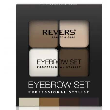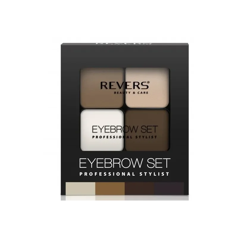 EYE BROW SET Revers pozwala na uzyskanie perfekcyjnych, wyraźnie podkreślonych brwi, które nadają twarzy wyrazistości i harmonii. Dzięki starannie dobranym odcieniom i woskowi makijaż utrzymuje się przez cały dzień, zapewniając naturalny efekt i profesjonalne wykończenie bez smug i plam.
