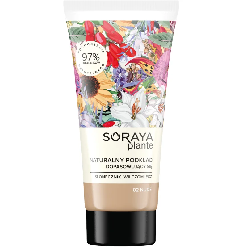 Soraya Plante Naturalny Podkład 02 Nude to innowacyjny kosmetyk, który łączy delikatne krycie z aktywną pielęgnacją. Dzięki lekkiej i nawilżającej formule podkład pozwala skórze oddychać, jednocześnie wyrównując jej koloryt i nadając świeży, naturalny wygląd. Obecność oleju z pestek słonecznika i ekstraktu z wilczomleczu sprawia, że podkład dodatkowo odżywia, wspiera odbudowę bariery ochronnej skóry i zapewnia jej miękkość. To doskonałe rozwiązanie dla osób, które chcą połączyć makijaż z pielęgnacją.