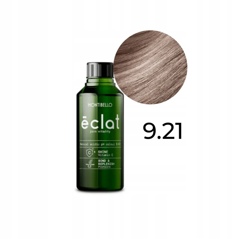 Montibello Éclat 9.21 to nowoczesna, demipermanentna farba do włosów o kwaśnym pH, stworzona z myślą o rewitalizacji i harmonizacji koloru. Odcień bardzo jasnego perłowo-popielatego blondu idealnie sprawdzi się do neutralizacji niepożądanych
