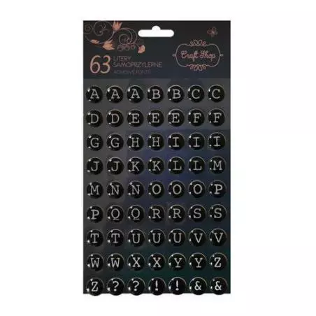 Okragłe samoprzylepne litery wykonane z czarnego Epoxy . 63 szt