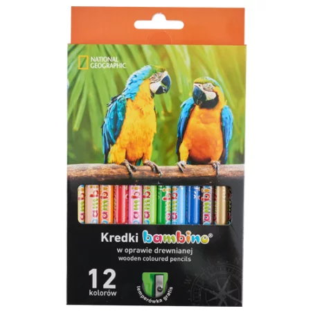 KREDKI BAMBINO DREWNIANE GRUBE 12 KOLORÓW + TEMPERÓWKA NATIONAL GEOGRAPHIC