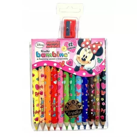 KREDKI BAMBINO DREWNIANE GRUBE 12 KOLORÓW + TEMPERÓWKA MYSZKA MINNIE DISNEY 3+
