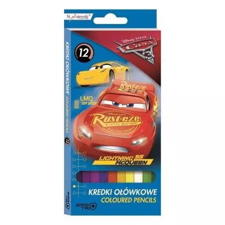 Kredki szkolne trójkątne, 12 kolorów, licencja CARS 3