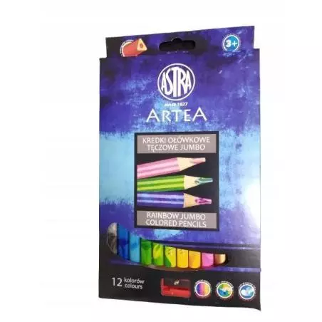 Kredki ołówkowe Astra Artea w oprawie drewnianej 12 tęczowych kolorów