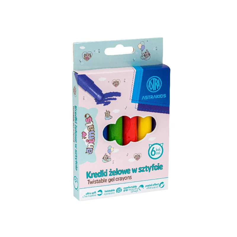 KREDKI W SZTYFCIE – to odpowiedniki farb w wygodnej formie sztyftu – plastikowa oprawka chroni ręce przed pobrudzeniem.