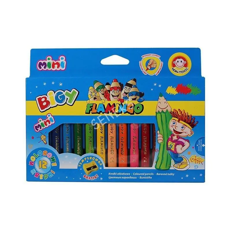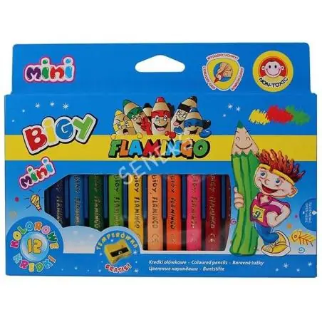 Kredki ołówkowe, intensywne kolory, rysik odporny na złamania, łatwe do ostrzenia. W zestawie temperówka.
