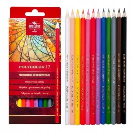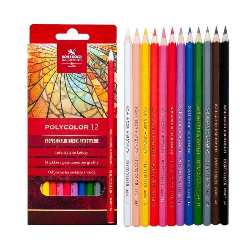 Profesjonalne kredki artystyczne Polycolor 12 kolorów w kartoniku. Wykonane z najwyższej jakości materiałów, dzięki czemu zapewniają miękkie rysowanie, trwałe i intensywne kolory.