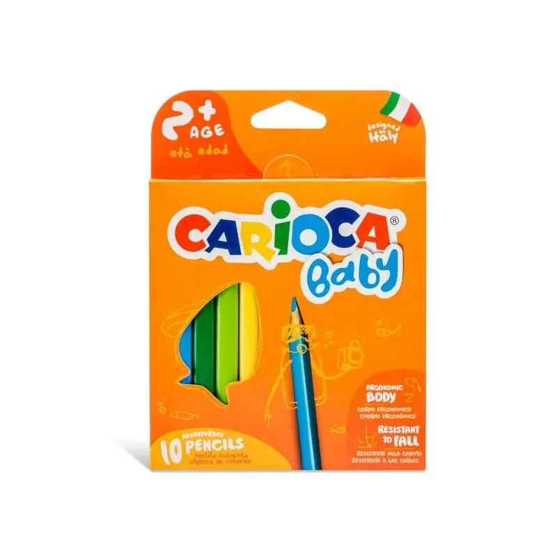 Kredki ołówkowe trójkątne Baby 10 kol. Carioca to bezpieczne, ergonomiczne i trwałe kredki dla dzieci. Wysokiej jakości materiały, żywe kolory i przemyślany kształt wspierają rozwój manualny, koordynację i kreatywność, czyniąc je idealnym wyborem do domu, przedszkola i szkoły.