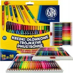 Zestaw dwustronnych kredek ołówkowych to aż 48 intensywnych kolorów zamkniętych w 24 wygodnych kredkach o trójkątnym przekroju. Stworzone specjalnie z myślą o małych artystach od 3. roku życia, kredki zapewniają komfort rysowania, pomagają rozwijać zdolności manualne i