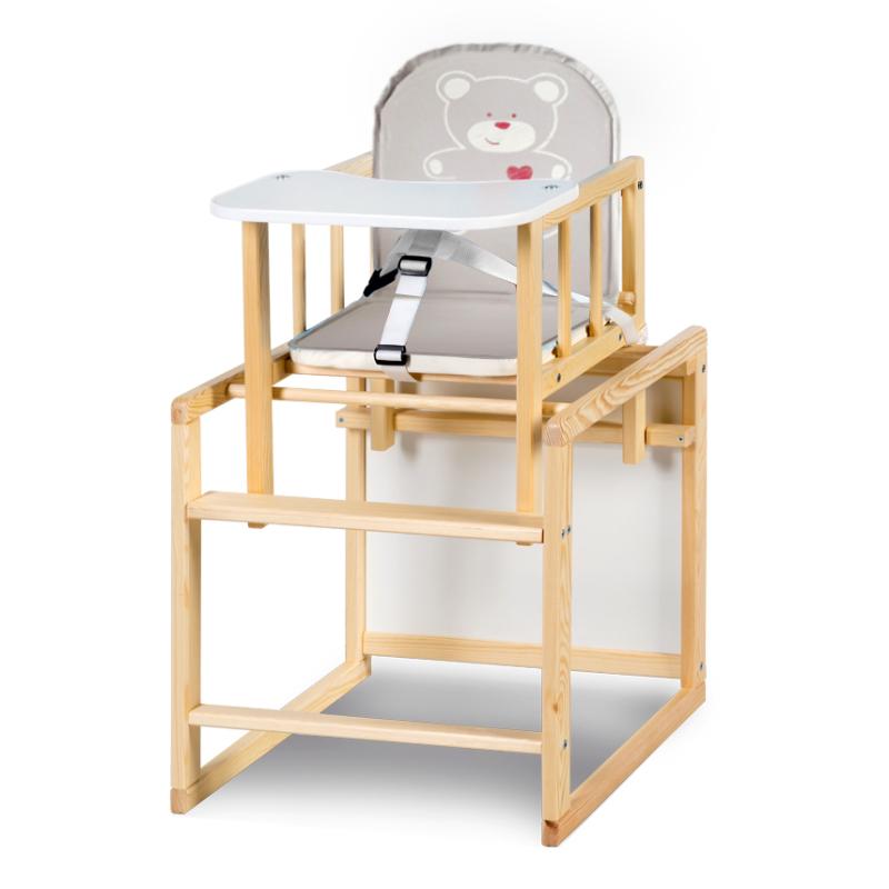 Klupś Aga I to praktyczne i bezpieczne krzesełko do karmienia, które szybko przekształcisz w wygodny zestaw: stolik i krzesełko do zabawy. Wykonane z naturalnego drewna sosnowego i płyty meblowej, zapewnia trwałość oraz estetyczny wygląd. Idealne do karmienia, rysowania, zabawy i nauki –