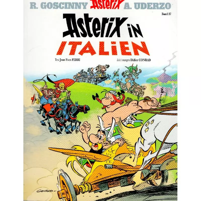 Asterix und Obelix begeben sich in die Höhle des Löwen! Denn Cäsar hat zu einem Wagenrennen quer durch Italien aufgerufen! Natürlich verlangt er hinterrücks nach dem Sieg eines römischen Teilnehmers, doch zu seinem Ungemach nehmen auch Gallier an dem Rennen teil. Obelix wurde nämlich von einer Wahrsagerin prophezeit, dass er ein großer Aurige wird. Während des Rennens merken die Teilnehmer schnell, dass es nicht mit rechten Dingen zugeht, während sich der maskierte römische Rennfahrer Caligarus unangefochten an die Spitze setzt. Hilfe kommt aus einer unerwarteten Richtung, denn unter den Völkern auf der italienischen Halbinsel herrschen nicht nur Sympathien für Cäsar vor ...