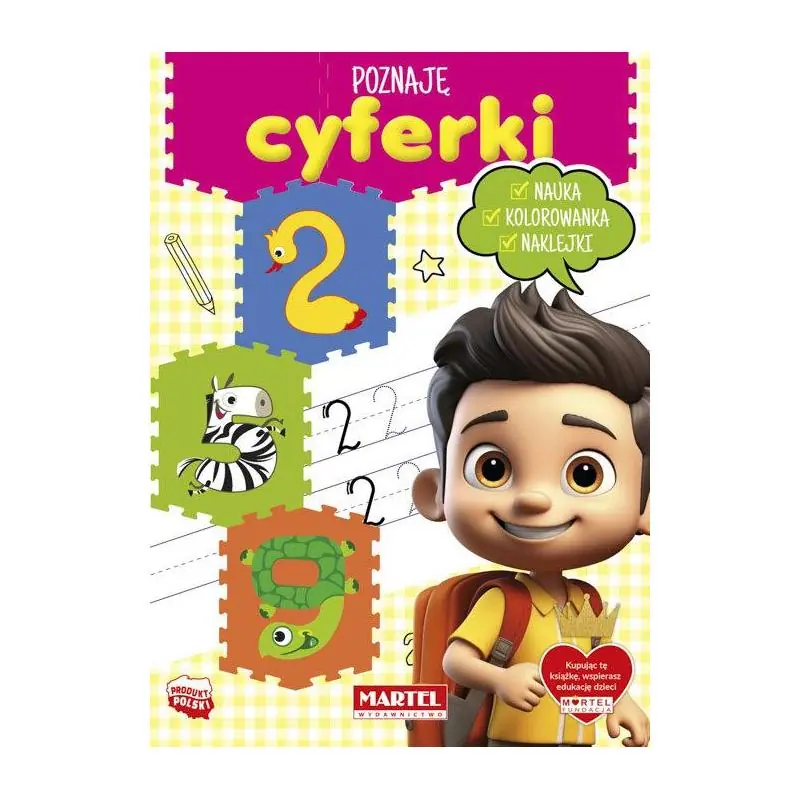 „Poznaję cyferki” to kolorowanka z naklejkami dla dzieci, które rozpoczynają swoją przygodę z rozpoznawaniem cyfr i prostymi zadaniami matematycznymi. Piękne rysunki to zachęta do nauki poprzez zabawę, a proste ćwiczenia pomogą nauczyć dodawać, odejmować i pozwolą rozwinąć manualne umiejętności. Do kolorowanki dołączono naklejki, które uatrakcyjnią wykonywanie zadań.