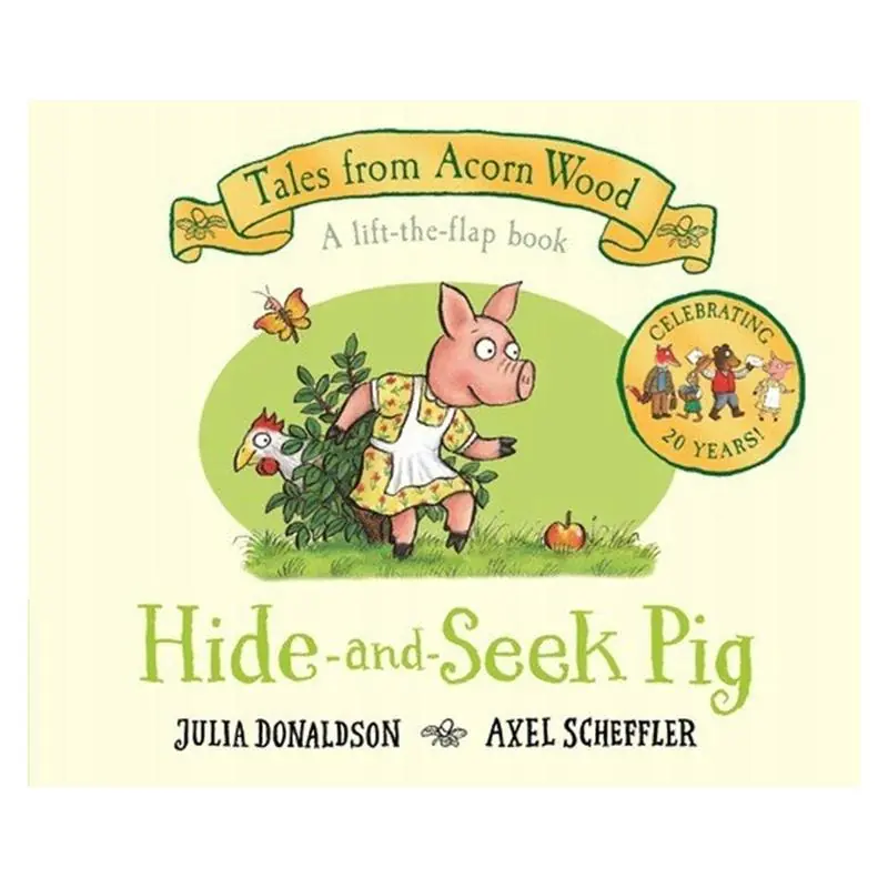 Lift the flaps and join in the fun with this bestselling preschool classic, Hide-and-Seek Pig by Julia Donaldson and Axel Scheffler, creators of The Gruffalo. Pig and Hen are playing hide-and-seek. But where on earth could Hen be? Can you lift the flaps and help Pig find out where Hen is hiding? With sturdy flaps on every spread and rhyming stories that are a joy to read aloud, the Tales from Acorn Wood series has been delighting both parents and toddlers for over twenty years.