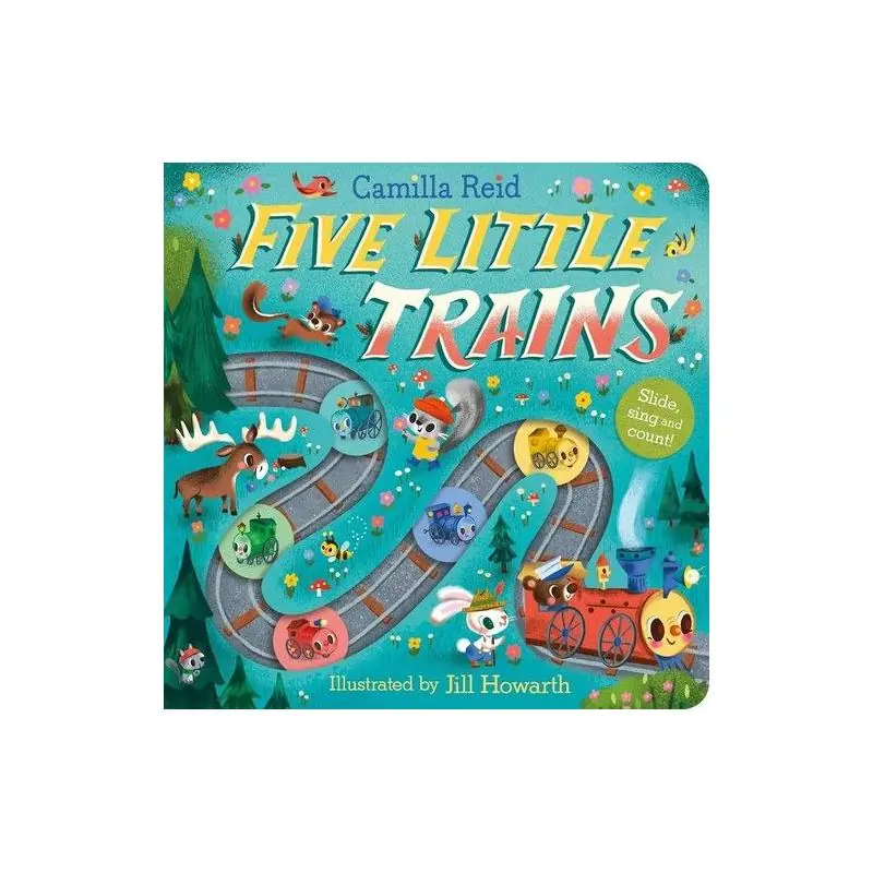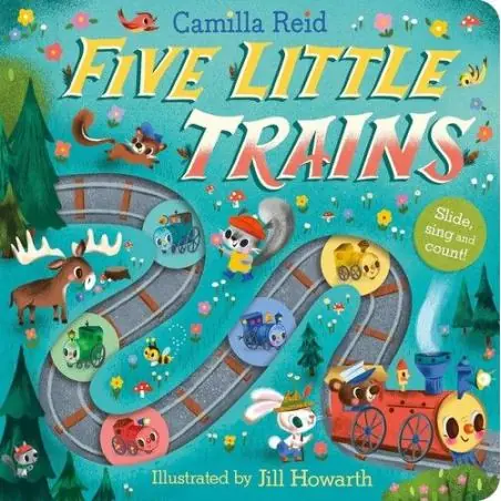 A brilliantly engaging interactive counting book – slide the buttons along the special track to count the little trains in this fun twist on the popular nursery rhyme, Five Little Ducks. Created by bestselling author Camilla Reid, this is a counting book like no other! Little children will have huge fun moving the buttons around the page to make Daddy